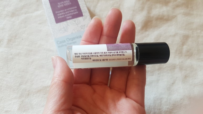 남해에서 묵었던 게하 중 한 곳에서 방마다 취침 또는 휴식 시 릴렉싱 효과를 위해 베개나 이불 등에 뿌릴 수 있도록 아로마 섬유미스트를 놓아두었는데 친구와 내가 그 미스트 향에 열광을 했었다. 그 향이 자꾸 생각 나던 찰나에 딱 이 아로마테라피 향수를 발견한 것. 향수에 대한 별명과 설명도